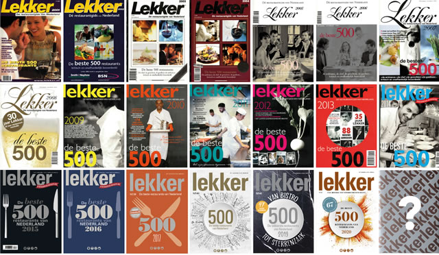 Lekker : “Uit respect voor de horeca hebben wij uiteindelijk het volgende besloten: er komt een Lekker500 editie 2021 in een aangepaste vorm, waarin er een podium wordt geboden aan de restaurateur. Deze speciale editie zal verschijnen op 27 oktober 2020 en de dag ervoor, op maandag 26 oktober, worden gepresenteerd. Lees het bericht: klik hier Website: klik hier.